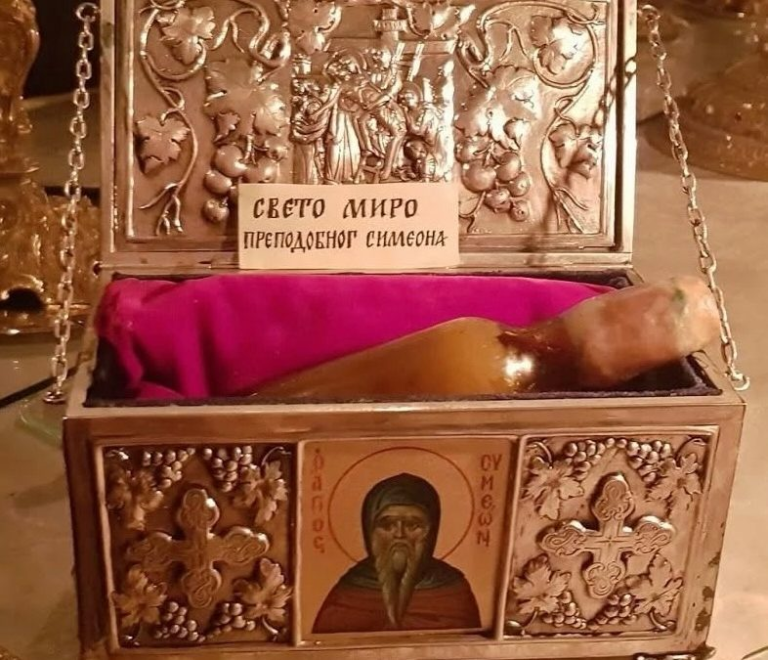 Преподобни Симеон Мироточиви је први мироточиви светитељ у историји Свете Горе. Прво обилно мироточење се...