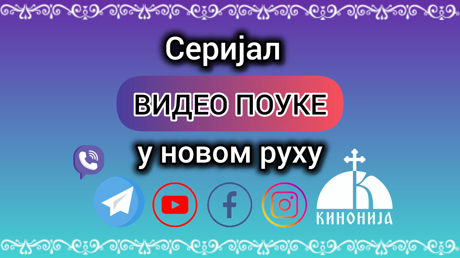 Следујући истини да је Црква Христова у својим мисионарским подухватима, који увек и искључиво подразумевају проповедање речи Божје, увек била савремена и ишла у корак са временом, мисионарски портал „Кинонија“ посетиоцима портала и страницâ на друштвеним мрежама, доноси серијал под називом „Видео поуке“. Благодарећи сталној сарадници нашег портала госпођици Јовани Бабовић, наведени серијал можете пратити у новом руху. Сви видео записи сабрани су на нашем Јутјуб каналу: