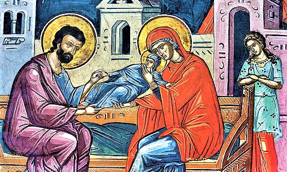 Јоаким и Ана, који су живели у браку и били непорочни пред Богом, Израиљцима су се, према закону, чинили достојнима прекора јер су били бездетни. Како у то време још није било наде на васкрсење, мислило се да је неопходно наслеђивање рађањем. Сада пак, када нам је Она, на данашњи дан рођена Дјева, девственим рађањем подарила вечност, није нам више неопходно наслеђивање кроз рађање деце. У то време су Израиљци бројно потомство сматрали за велику врлину, а бездетност (неплодност) за највећи порок, због чега су и оне праведнике, уместо да их хвале због врлине, презирали што немају деце. Будући ожалошћени њиховим презиром, ови праведници су се опомињали Авраама и Саре, као и других што су осетили дубоку жалост због немања деце, а затим су, имајући на уму лек који су они нашли као исцељење у тако великој жалости, одлучили да и сами са молбом притекну Богу. Целомудрени Јоаким је отишао у пустињу, тамо се настанио и подвизавао постом, узносећи Богу молитву да постане отац. Он није прекидао молитву нити се враћао отуда све док није добио уверење да ће његова прозба бити услишена. Будући једномислена са њим, Ана се затворила у оближњем врту, вапијући Господу са болом у срцу: „Услиши ме, Боже отаца мојих, и благослови ме као што си благословио и Сарину утробу“. И Господ ју је услишио и благословио их, и дао им обећање. То обећање се данас (тј. на данашњи дан) и испунило, и Господ им је подарио чедо, чудесније од сваког претходног чуда, Родитељку Онога што је све створио, Која је људски род обожила и земљу онебесила, Сина Божијег учинила (сином) човечијим а људе синовима Божијим, јер је у Себи бесемено зачела и као Оваплоћеног неизрециво родила Онога Који је све из небића привео у биће и пресаздао га у добробиће, не допуштајући да се распадне у небићу.