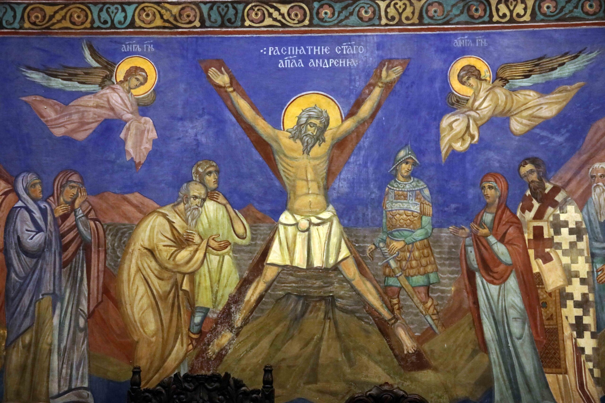 “Let us praise the most glorious Apostle Andrew, kinsman of Peter and first disciple, eyewitness and servant of God the Logos; for he enlightened the nations, was crucified, and as a disciple of the Master finished his life” (Exapostilarion).