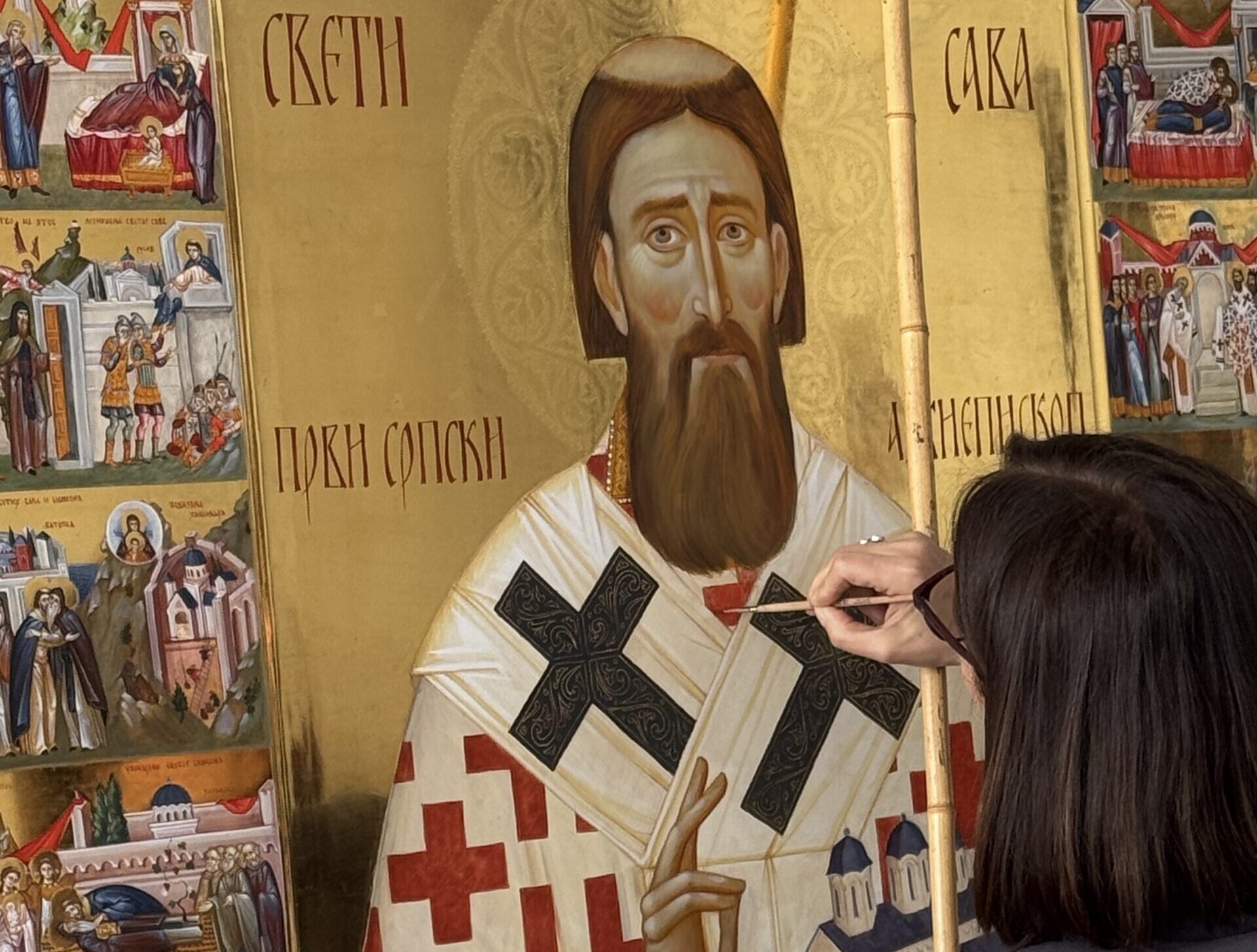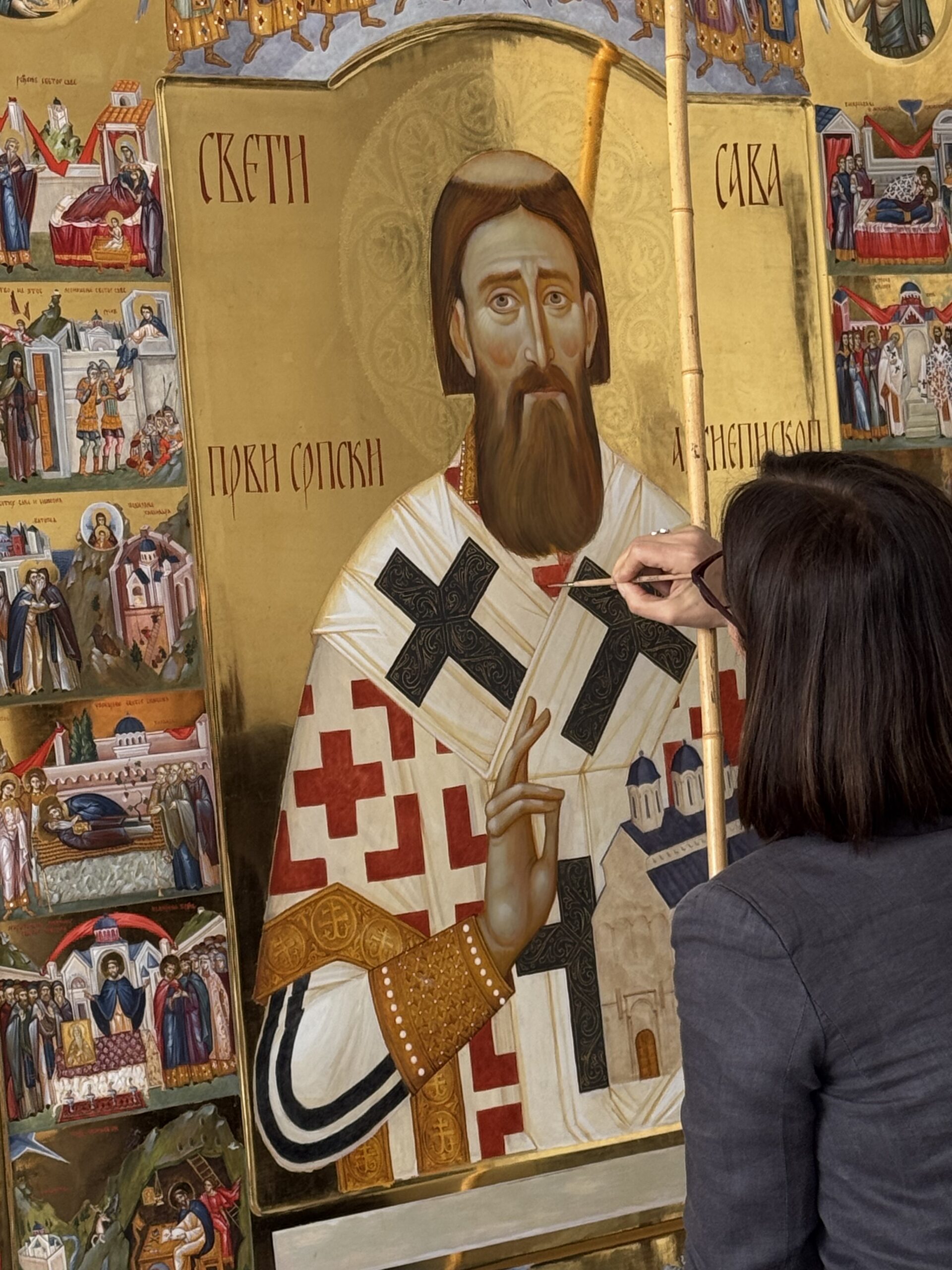 - Недавно сте насликали житијску икону Светог Саве за манастир Ковиљ. Можете ли нам рећи нешто више о том пројекту и самом процесу израде иконе? Како се родила идеја за сценама које су приказане?