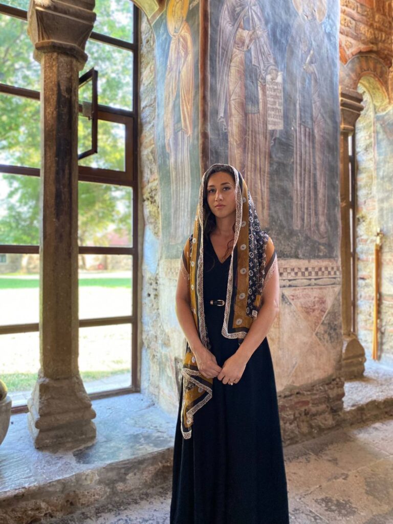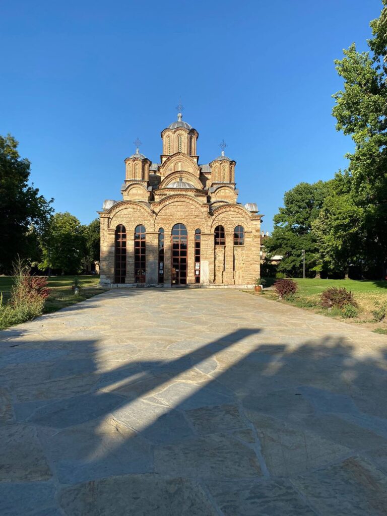 У врело јулско предвечерје пут нас је одвео до манастира Грачанице, најопеванијег манастира који је својом лепотом очарао многе уметнике, ходочаснике; сваком ко се нашао близу ње, зауставио је дах и дуго, дуго је у себи носио мирис тамјана и благост склада боја са фрески. Стигле смо на почетак вечерње службе, дочекала су нас звона и анђеоско појање монахиња. Грачаница, која се купа у зрацима залазећег сунца сигурно је нешто најлепше што сам видела у свом животу. Историја манастира, географски положај, а највише духовни значај који има за Србе, не само на Космету, него било где на свету, све то доприноси обиљу информација које је требало селектовати и презентовати као најважније.