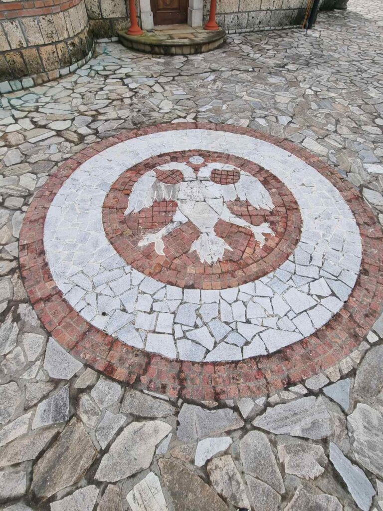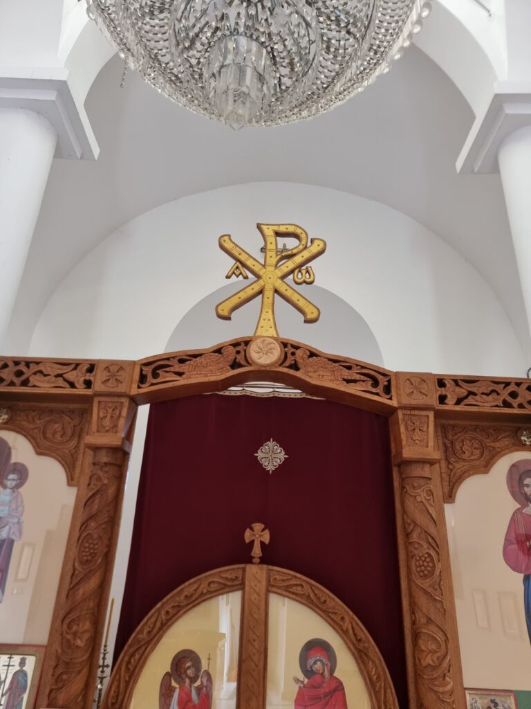 И заиста, овај монограм је нешто јединствено, не сећам се да сам негде видела тако упечатљив, јер још с врата као да поручује ,,Овим побеђуј“.